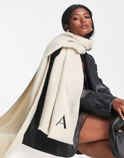 Bufanda color piedra claro con letra "A" y monograma de ASOS DESIGN