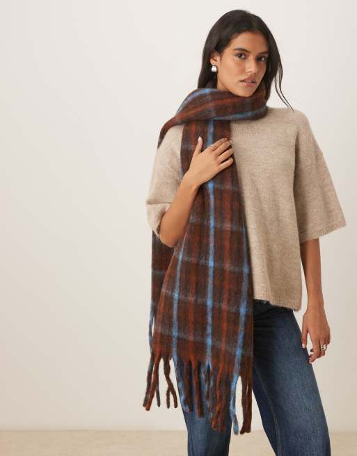 Bufanda marrón chocolate a cuadros pequeños de ASOS DESIGN