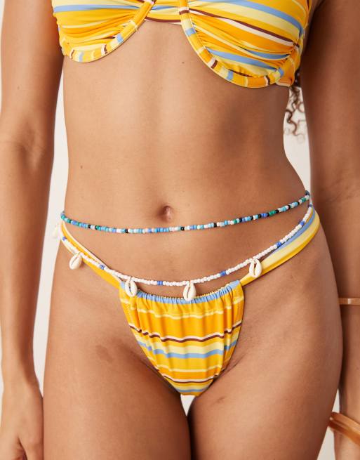 Cadena para el vientre dorada de varias hileras de cuentas con conchas de ASOS DESIGN