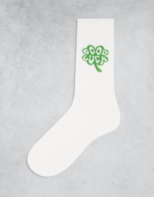Calcetines blancos con bordado de trébol de la suerte de ASOS DESIGN