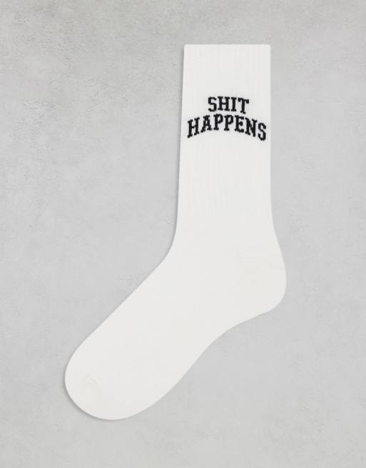 Calcetines blancos con detalle artístico "Shit Happens" de ASOS DESIGN