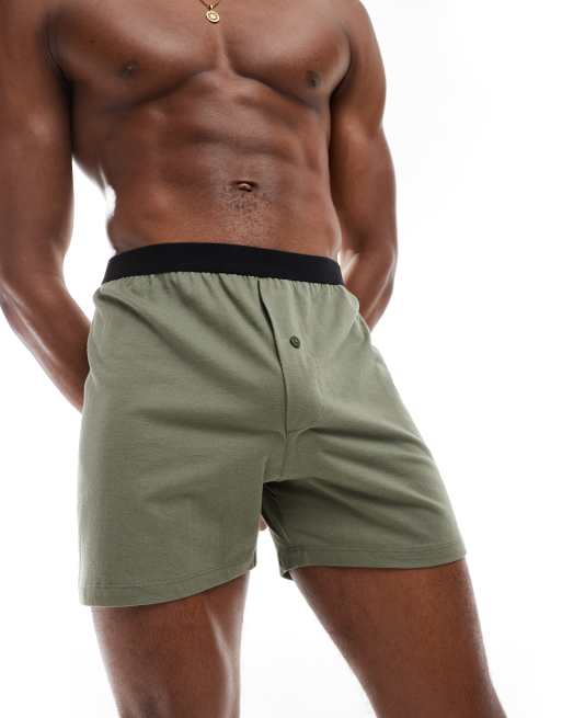 Calzoncillos bóxer caquis con cinturilla en contraste de ASOS DESIGN