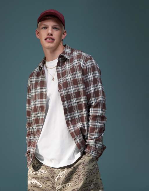 Camisa a cuadros marrones de corte cuadrado extragrande de estilo años 90 de ASOS DESIGN