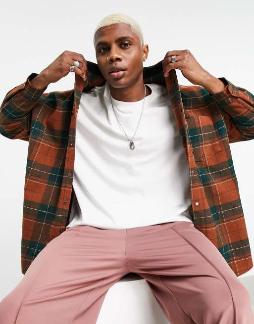Camisa a cuadros marrones extragrande de lana de ASOS DESIGN