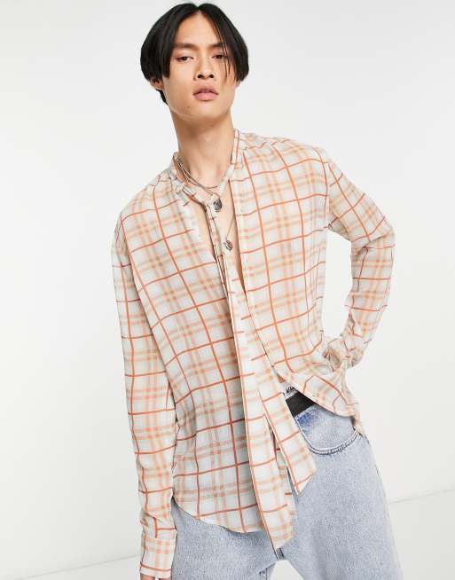 Camisa a cuadros transparente de corte estándar con lazada en el cuello de ASOS DESIGN