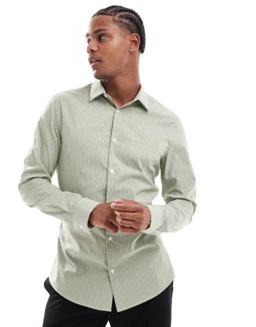 Camisa a rayas caquis entallada de ASOS DESIGN