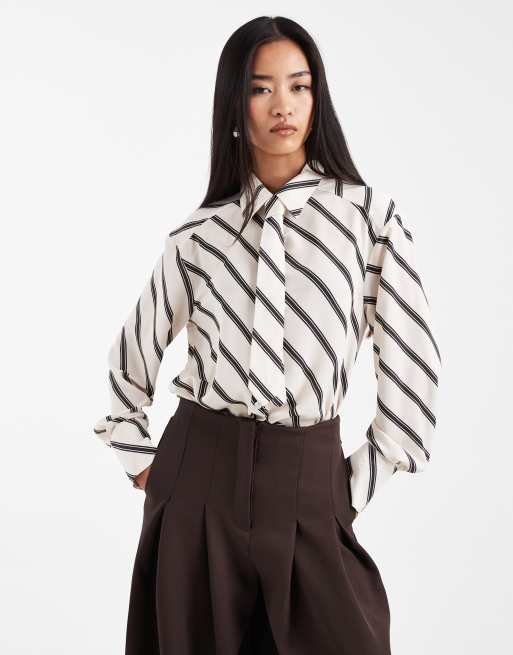 Camisa a rayas con corbata de chifón de ASOS DESIGN