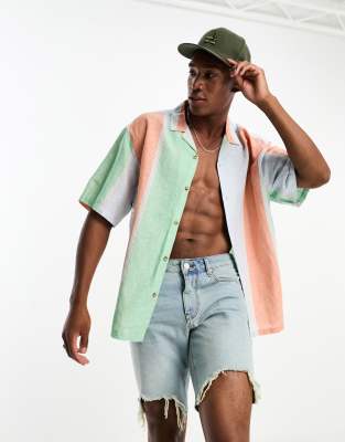 Camisa a rayas de corte extragrande cuadrado con solapas de mezcla de lino de ASOS DESIGN
