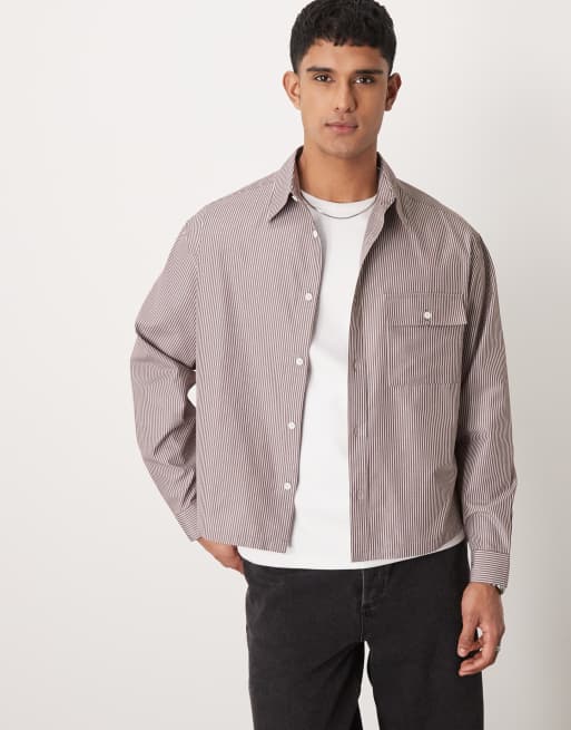 Camisa a rayas grises de corte cuadrado extragrande de ASOS DESIGN