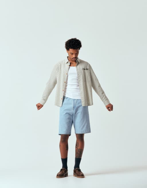 Camisa a rayas grises holgada con bordado en el pecho de sirsaca de ASOS DESIGN