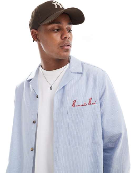Camisa a rayas holgada con cuello de solapas y bordado rojo en el pecho de ASOS DESIGN