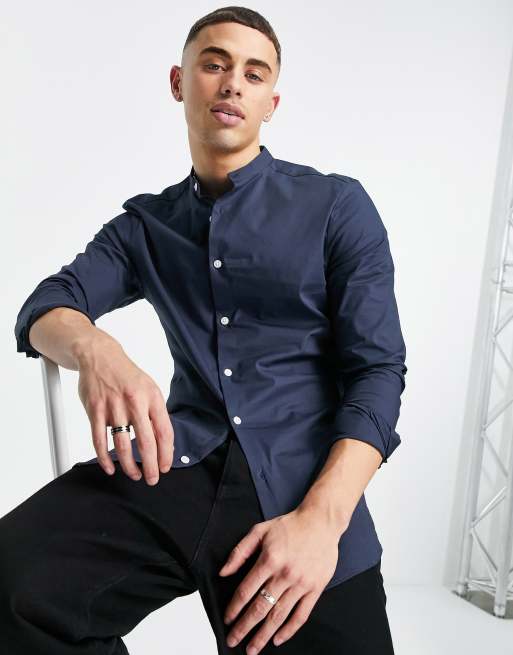 Camisa ajustada con cuello henley en azul marino de ASOS DESIGN
