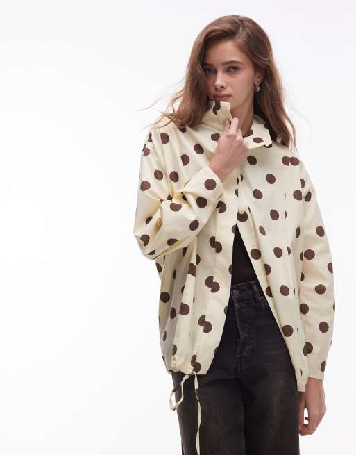 Camisa amarillo crema de estilo deportivo con estampado de lunares y cuello alzado de ASOS DESIGN
