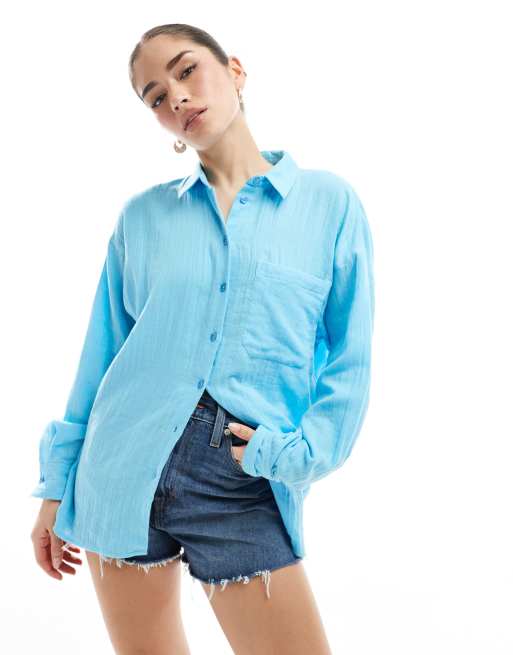 Camisa azul extragrande de algodón texturizado de ASOS DESIGN (parte de un conjunto)