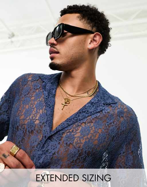 Camisa azul marino holgada con cuello de solapas de encaje de ASOS DESIGN