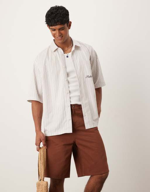 Camisa beis a rayas extragrande con bordado en el pecho de ASOS DESIGN