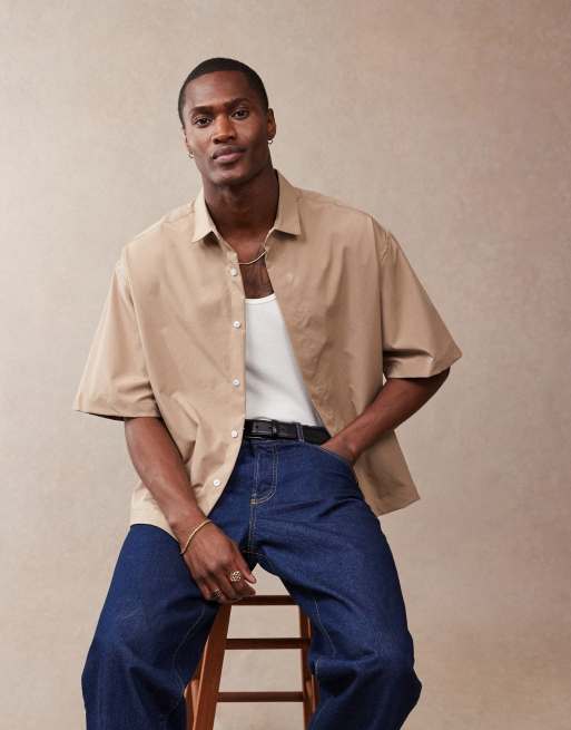 Camisa beis de corte cuadrado extragrande de ASOS DESIGN