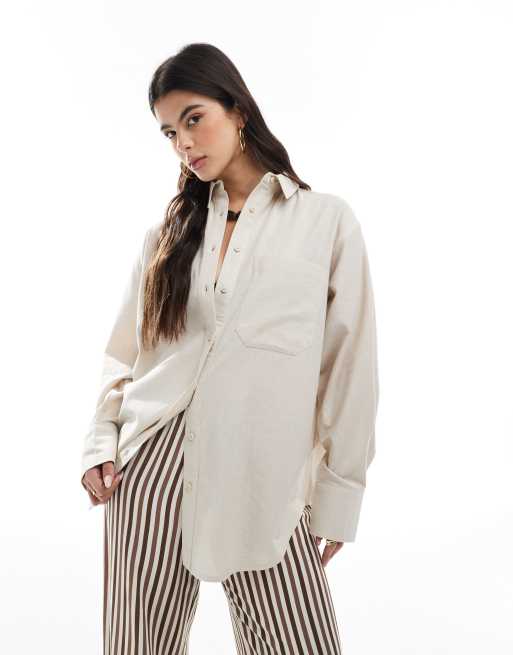 Camisa beis extragrande de mezcla de lino de ASOS DESIGN