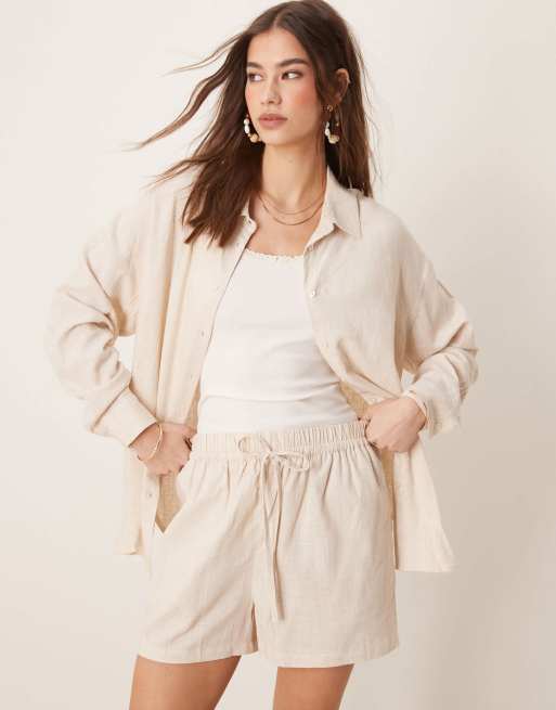 Camisa beis extragrande de tejido efecto lino de ASOS DESIGN (parte de un conjunto)