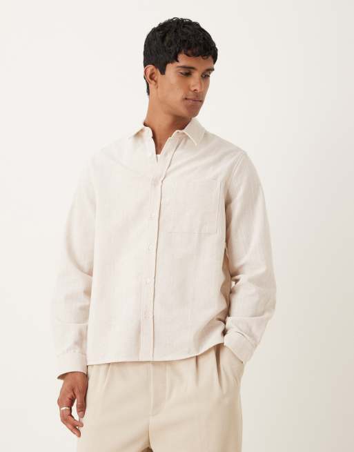 Camisa beis holgada con solapas cuadradas de tejido texturizado de ASOS DESIGN