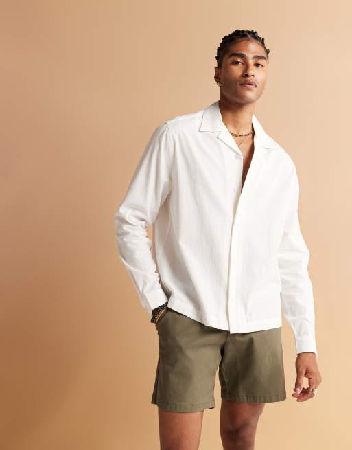 Camisa blanca de corte cuadrado con cuello de solapas de jacquard de ASOS DESIGN