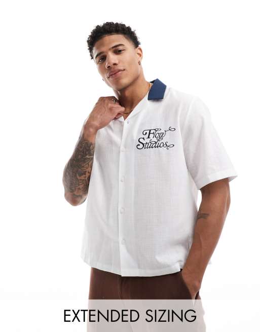 Camisa blanca estilo bolera de corte cuadrado holgado con cuello de solapas y bordado en el pecho de ASOS DESIGN
