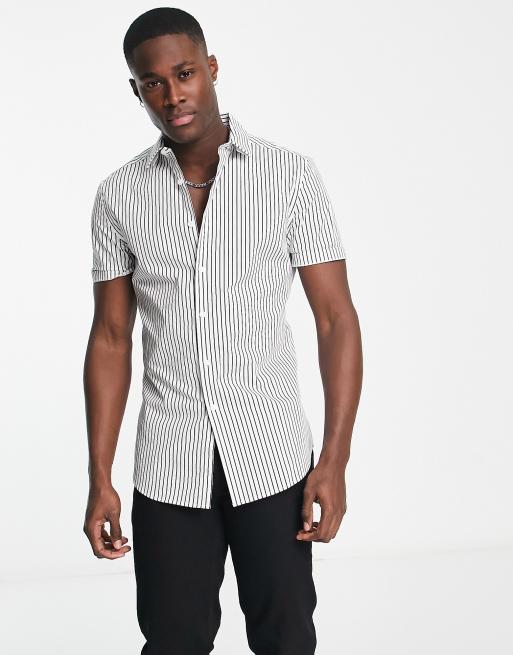 Camisa blanca y negra entallada a rayas de ASOS DESIGN