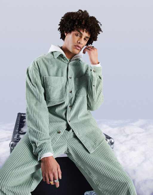 Camisa color menta extragrande con diseño irregular de pana de ASOS DESIGN (parte de un conjunto)