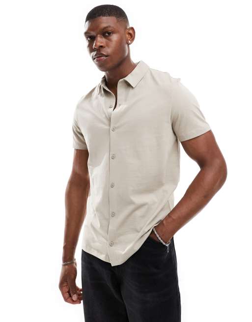 Camisa color piedra de punto liso de ASOS DESIGN