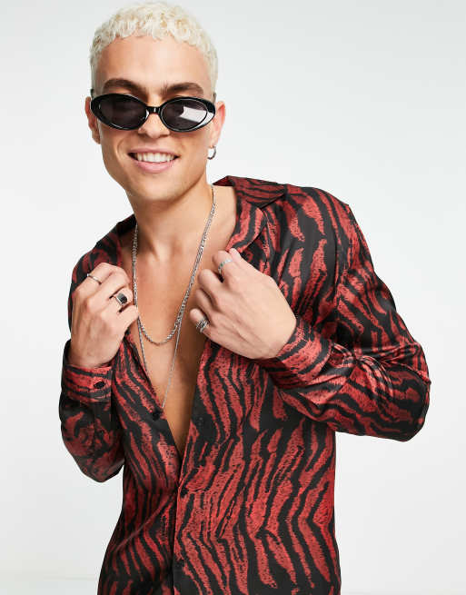 Camisa con cuello de solapas marcadas y estampado de tigre de satén de ASOS DESIGN