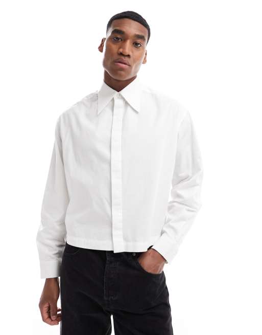 Camisa corta blanca con cuello de estilo años 70 de popelina de ASOS DESIGN