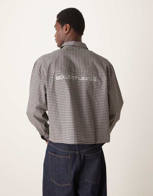 Camisa corta negra a cuadros extragrande con bordado trasero de ASOS DESIGN