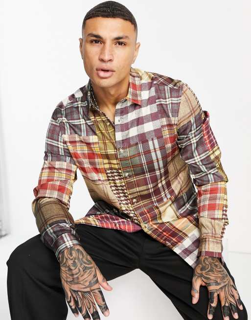 Camisa de cuadros de patchwork de satén de ASOS DESIGN