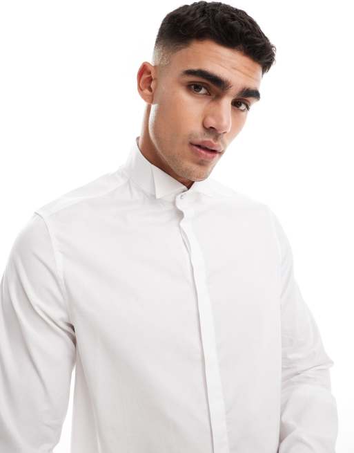Camisa de vestir blanca de corte estándar de tejido texturizado de ASOS DESIGN Wedding