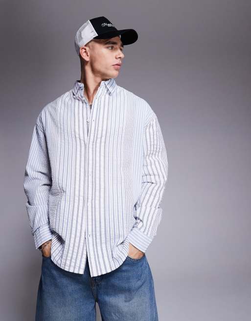 Camisa extragrande a rayas blancas y azules estilo años 90 de sirsaca de ASOS DESIGN