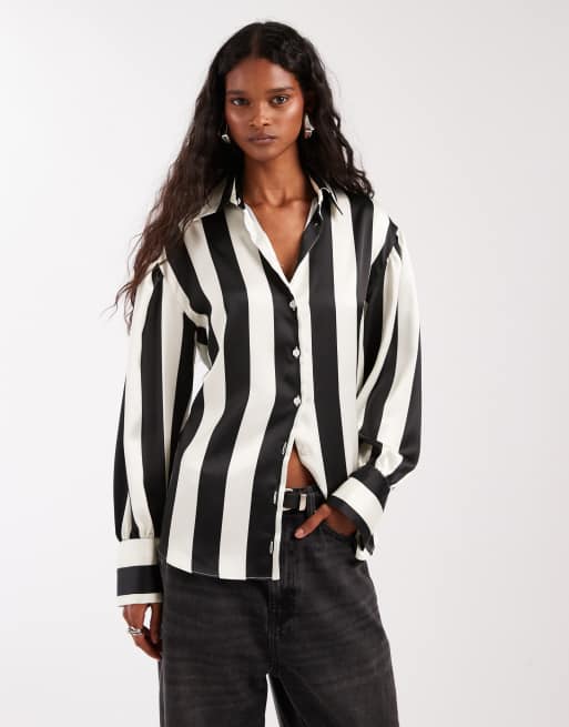 Camisa extragrande a rayas negras de satén de ASOS DESIGN