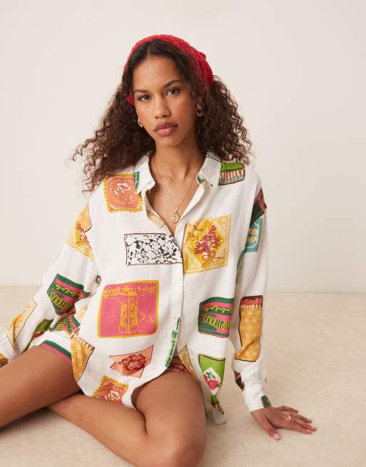 Camisa extragrande con estampado de caja de cerillas de efecto lino de ASOS DESIGN (parte de un conjunto)
