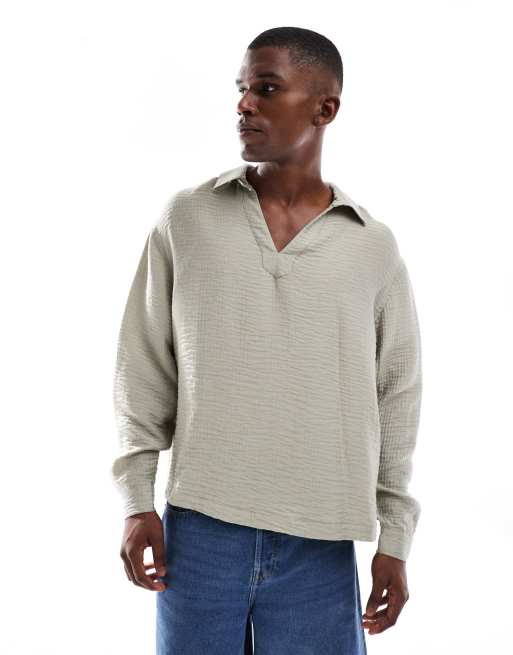Camisa gris extragrande sin cierres de tejido texturizado de ASOS DESIGN