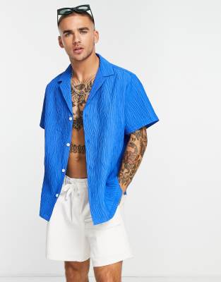 Camisa holgada azul cobalto con textura rugosa de ASOS DESIGN