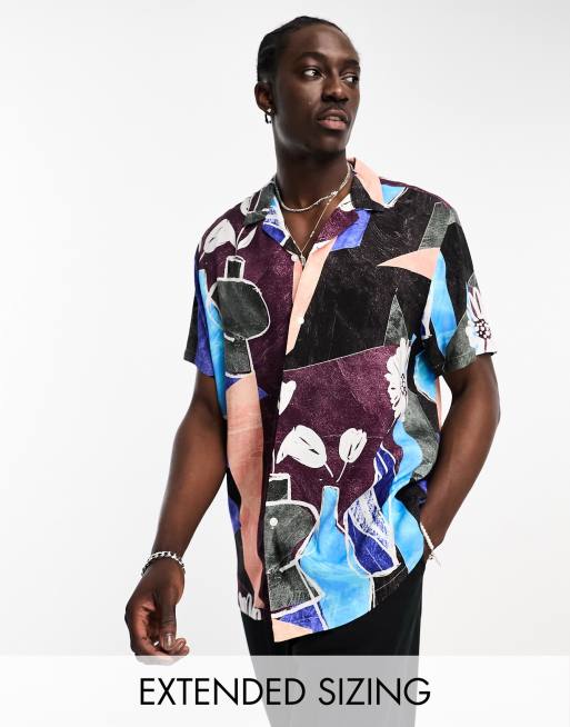 Camisa holgada con estampado abstracto floral y solapas de ASOS DESIGN