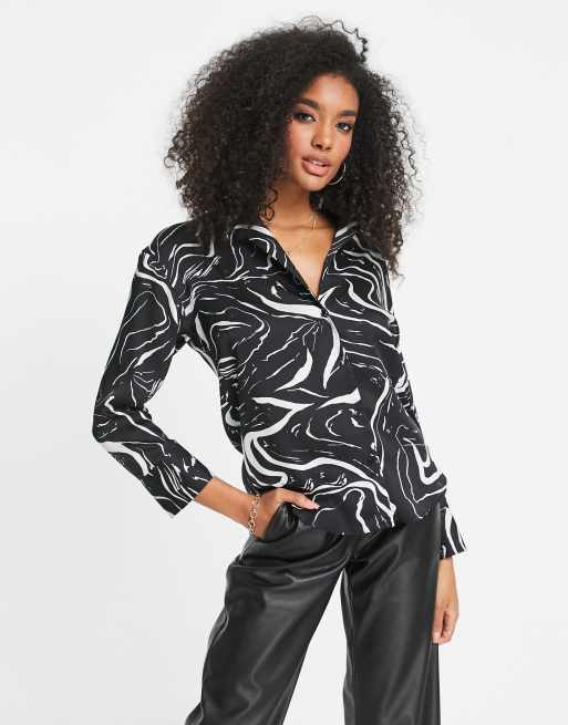 Camisa holgada con estampado monocromático de estilo mármol de satén de ASOS DESIGN