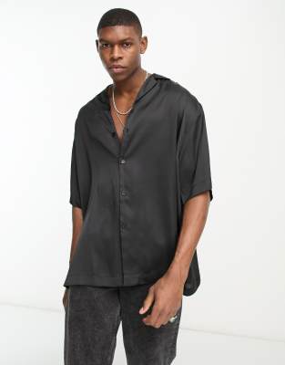 Camisa larga negra extragrande de satén de ASOS DESIGN
