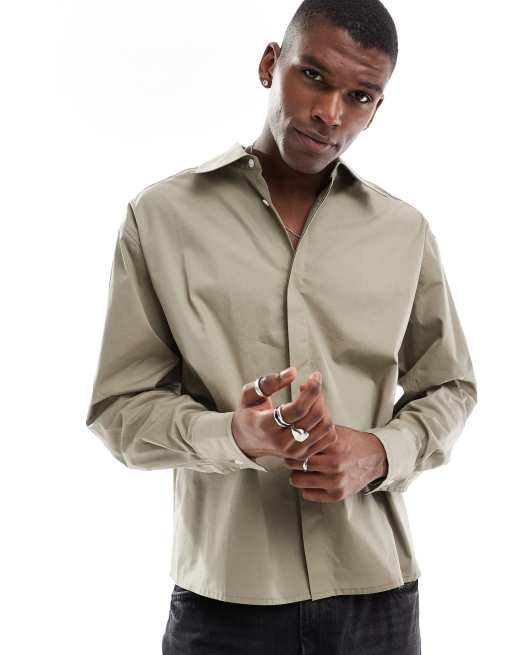 Camisa marrón a cuadros de corte cuadrado extragrande con solapas estilo años 70 de ASOS DESIGN