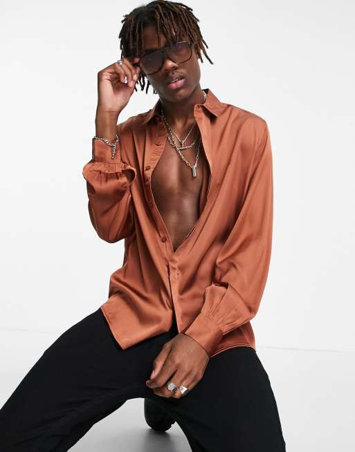 Camisa marrón cobre con mangas voluminosas de satén de ASOS DESIGN