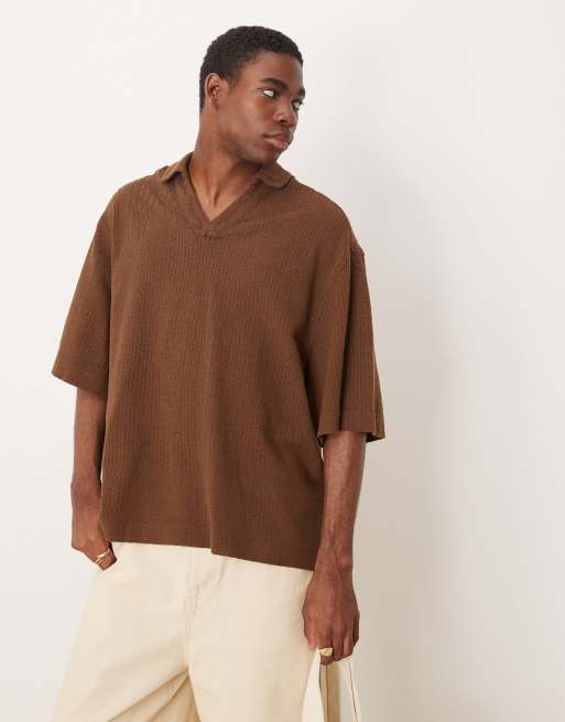 Camisa marrón de corte cuadrado extragrande sin cierres de croché de ASOS DESIGN