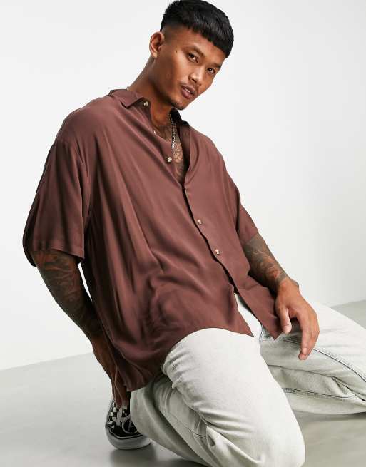 Camisa marrón extragrande de corte cuadrado de viscosa de ASOS DESIGN