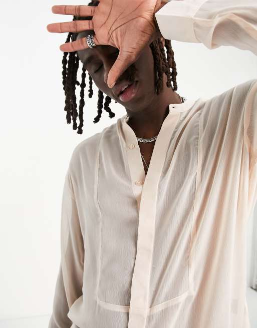 Camisa melocotón con media plaqueta y cuello mao de crepé transparente de ASOS DESIGN