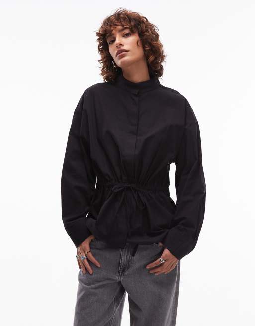 Camisa negra con cuello alzado y cordón ajustable en la cintura de ASOS DESIGN