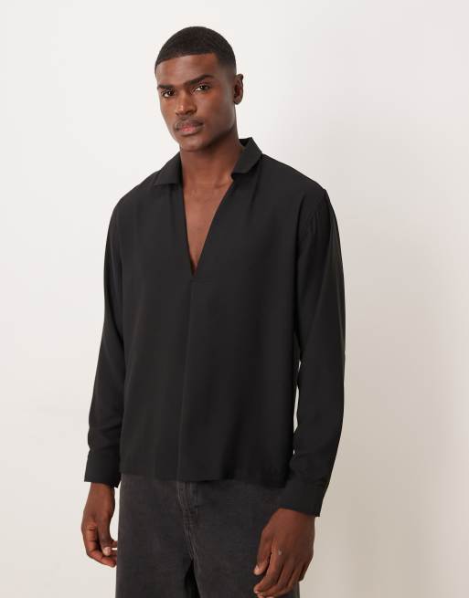 Camisa negra de corte cuadrado extragrande de satén de ASOS DESIGN