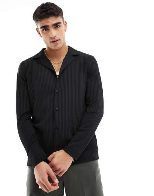 Camisa negra de manga larga con solapas de punto acanalado de ASOS DESIGN
